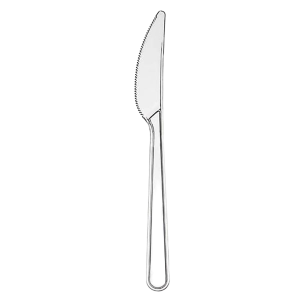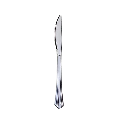 Couteau jetable de luxe en plastique rigide, noir, poids 3,8 g, longueur 18 cm. Adapté au contact alimentaire, avec une structure résistante et de qualité, il offre une solution économique, pratique et élégante sans besoin de lavage. Son grammage élevé et son épaisseur le rendent plus solide, idéal notamment pour la viande, le poulet, les pides, etc., où les couverts ne doivent pas se casser. Produit : Couteau en plastique de luxe noir Conditionnement : · Lot de 100 pièces par paquet · Carton de 2000 pièces
